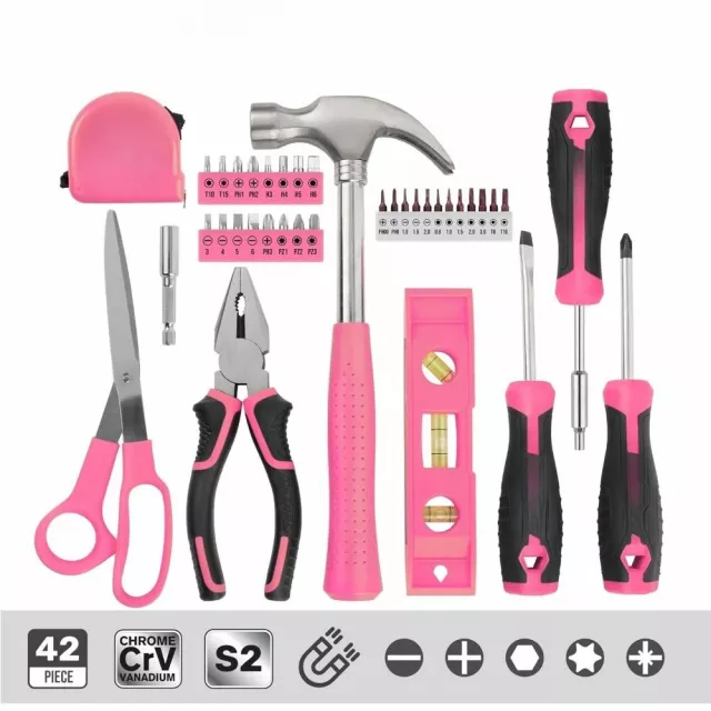 42% Pink 13-Piece Essential Home Tool Set for DIY, Repairs & Small Spaces
