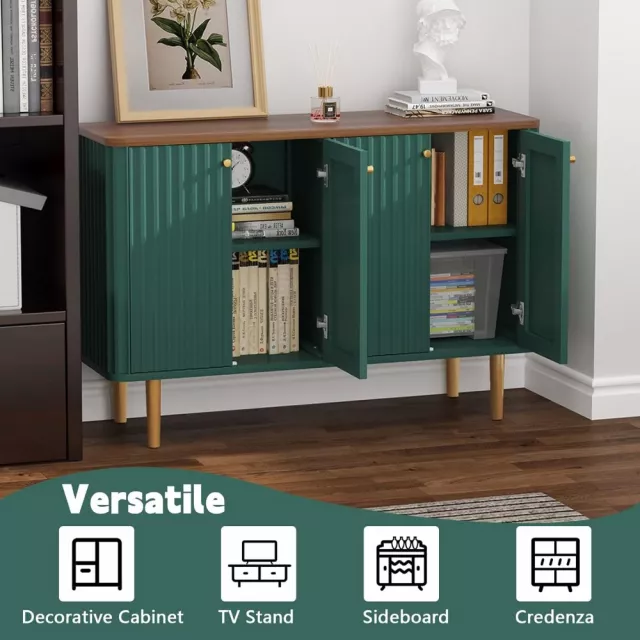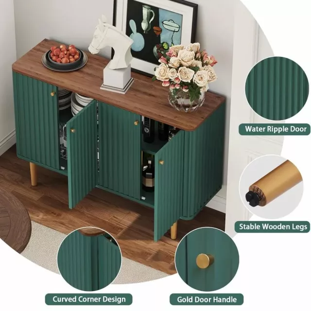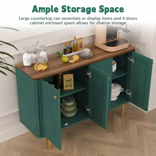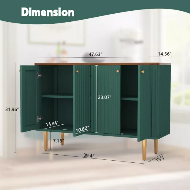 Transform your space with the elegant charm and smart functionality of this 48″ Modern Sideboard Buffet Cabinet. Featuring a bold gold-green color palette and a sleek water ripple design, this 4-door accent cabinet is the perfect blend of modern aesthetics and practical storage. Whether you’re decorating your living room, entryway, dining area, or office, this versatile piece brings a refined touch that elevates any room.