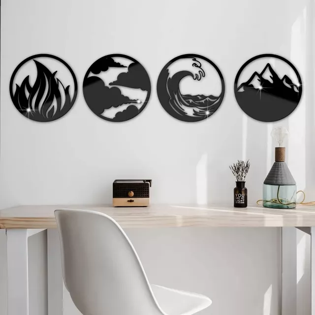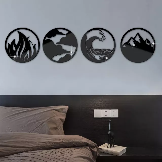 Bring harmony, beauty, and modern style to your home with this 4-piece 3D Acrylic Mirror Wall Sticker Set, inspired by the timeless elements of wind, fire, water, and soil. These stunning round mirrors add a striking focal point to any room, blending nature’s essence with sleek contemporary design. Crafted with precision laser cutting and a flawless carving process, each piece boasts smooth edges and a clean finish — no transparent borders — ensuring a bold, polished look on any wall color.