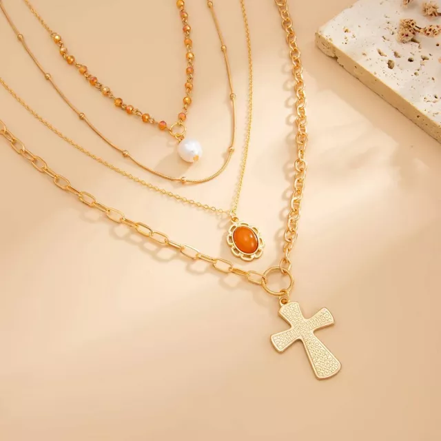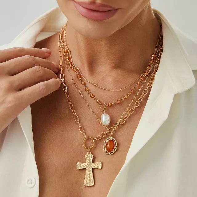 Step up your jewelry game with this striking 4-piece Punk Jesus Cross Layered Necklace Set. Featuring a blend of edgy geometric chains and classic imitation pearl pendants, this set delivers a bold yet elegant look. The vintage gold color adds warmth and sophistication, making it a versatile accessory for any occasion. Whether you’re dressing for a party, a night out, or a stylish daytime look, this set lets you express your unique style with confidence.