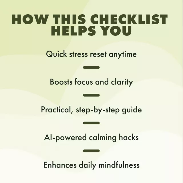 • Printable and reusable checklist—use daily or whenever anxiety strikes.