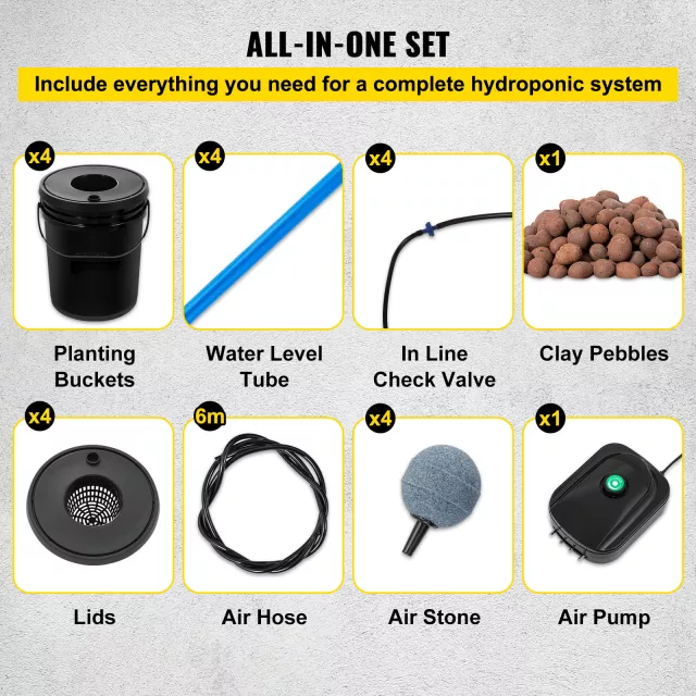 • Complete Kit: Comes with buckets, air pump, air stones, connectors, clay pebbles, and all necessary accessories for easy assembly and use.
