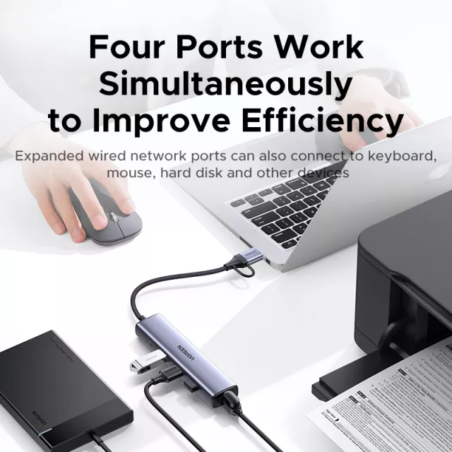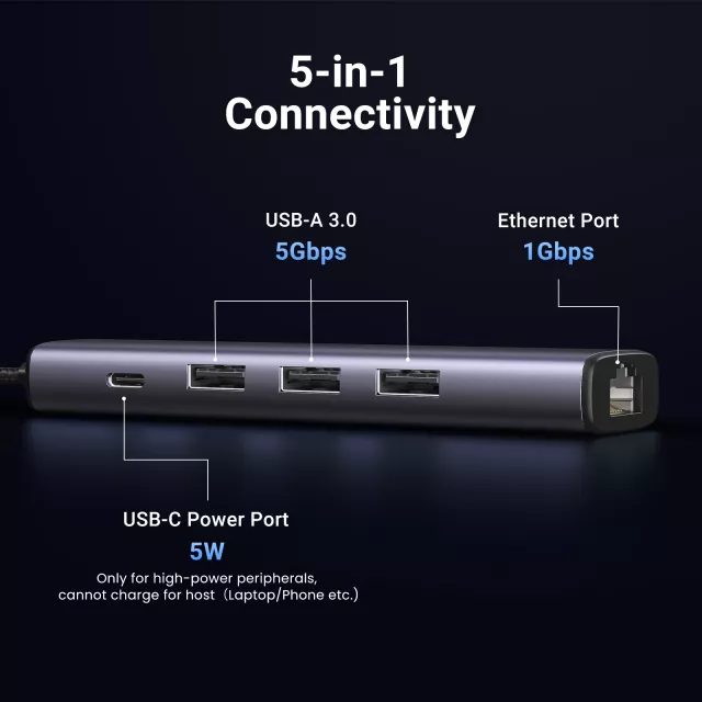 • 5-in-1 Design: Combine internet, file transfer, and peripheral connections in one sleek device.