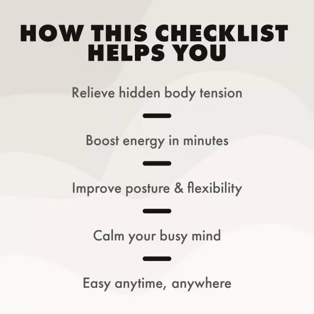 This digital checklist is designed for anyone feeling the weight of daily tension—busy professionals, students, parents, or anyone spending long hours sitting. If you’re looking for a quick, practical, and effective way to recharge, the 5-Minute Full-Body Tension Release Routine will become your new daily habit.