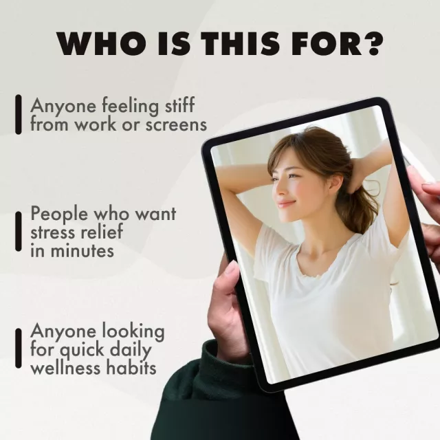 Unlike generic stretching guides, this routine blends quick physical release techniques with mindful breathing and a unique AI-powered self-care section. It’s not just about movement—it’s about building a tension-free lifestyle you can maintain effortlessly.