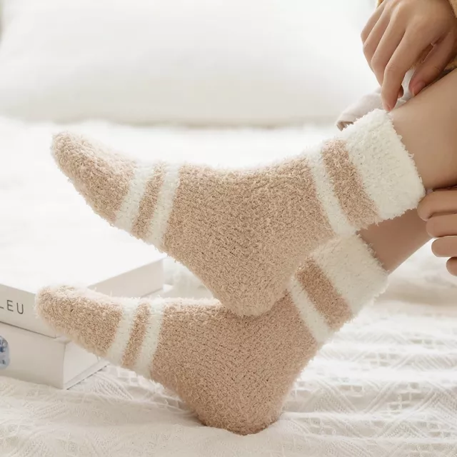 Experience the perfect blend of warmth and comfort with these Cozy Winter Plush Striped Sleeping Socks. Designed with a thick, velvety texture and a charming striped pattern, these socks offer everything you need for cold nights, relaxing days indoors, and effortless everyday comfort. Made from soft polyester fibers, they feel gentle on the skin while keeping your feet snug and insulated.