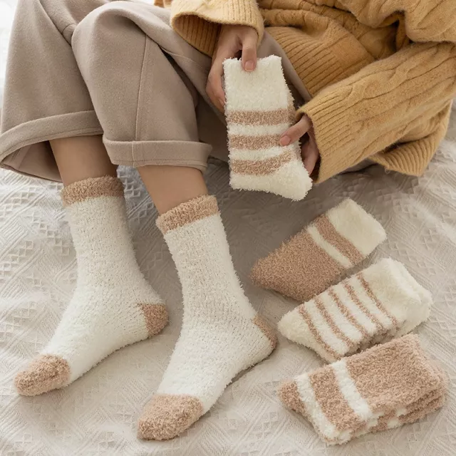 5 Pairs Cozy Winter Plush Striped Warm Sleeping Socks
