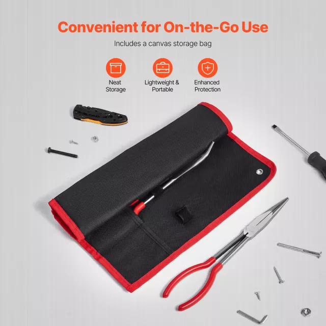 Take on any project with confidence using this versatile 5-piece long needle nose pliers set. Designed for precision, durability, and comfort, this complete toolkit includes diagonal cutting pliers, 45° bent nose pliers, 90° bent nose pliers, round nose pliers, and long nose pliers. With a range of jaw shapes and extended 11-inch handles, you’ll have the perfect tool for every task—whether it’s cutting, gripping, bending, or twisting.