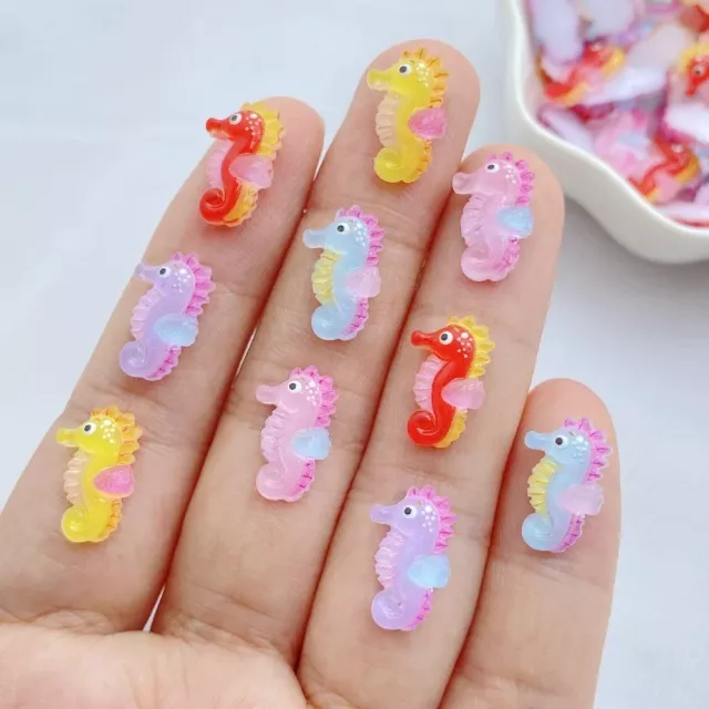 50Pcs Colorful Little Hippocampus Japonicus Resin Flat Back Ornaments for Jewelry & Crafts