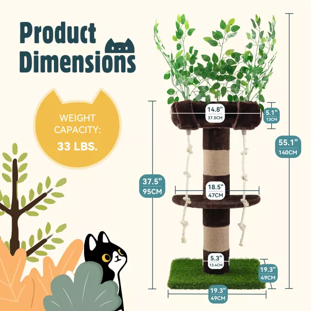 Give your cat the perfect playground and relaxation space with this 55-inch Cat Tree. Designed to meet all of your cat’s natural instincts, this multi-level cat tower offers a cozy perch, exciting scratching posts, and a fun jungle of leaves for your cat to explore. Whether your furry companion is looking to scratch, climb, nap, or just gaze out of the window, this cat tree has everything they need for endless hours of fun and comfort.