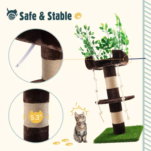 • Provides mental stimulation: The different levels, leaves, and scratch posts help keep your cat mentally engaged.