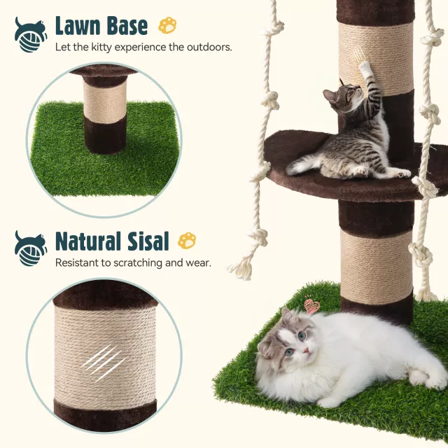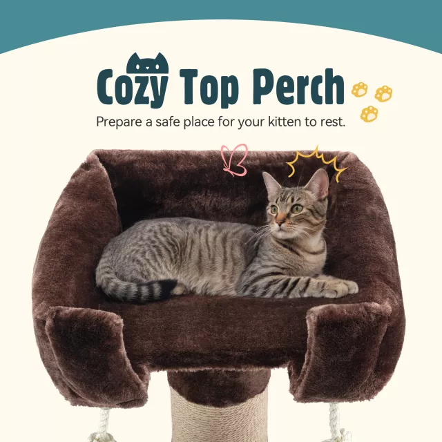 • Interactive Scratching Post: Equipped with a durable sisal rope scratching post that satisfies your cat’s natural scratching instinct, protecting your furniture from damage.