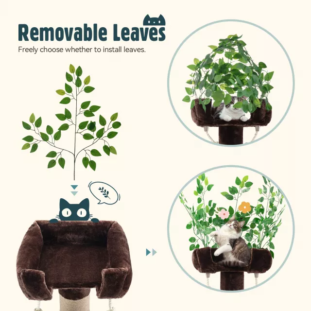 55-Inch Cat Tree with Leaves and Scratching Post for Indoor Cats