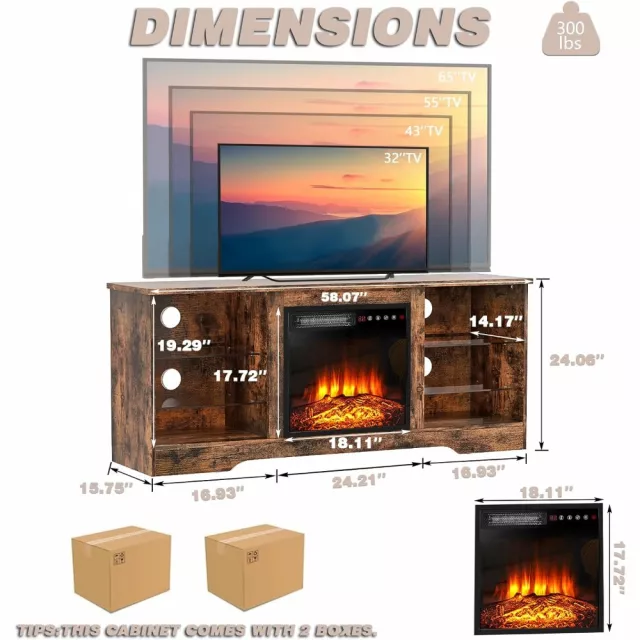58″ Fireplace TV Stand with 18″ Electric Insert & Remote