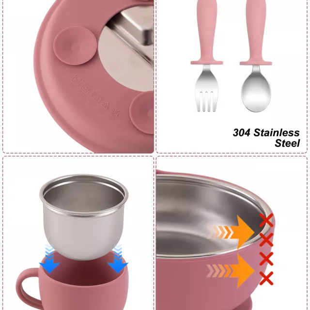 5PCS Stainless Steel Baby Feeding Set with BPA-Free Silicone Bowl & Utensils