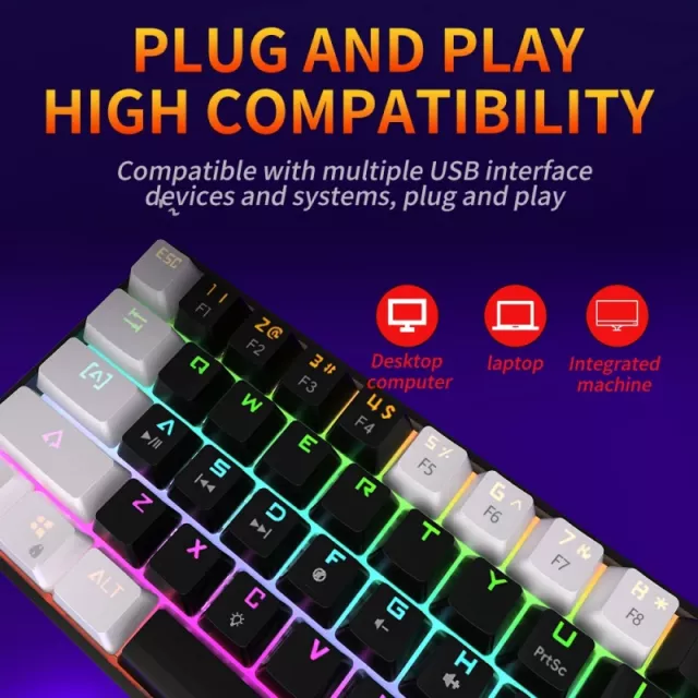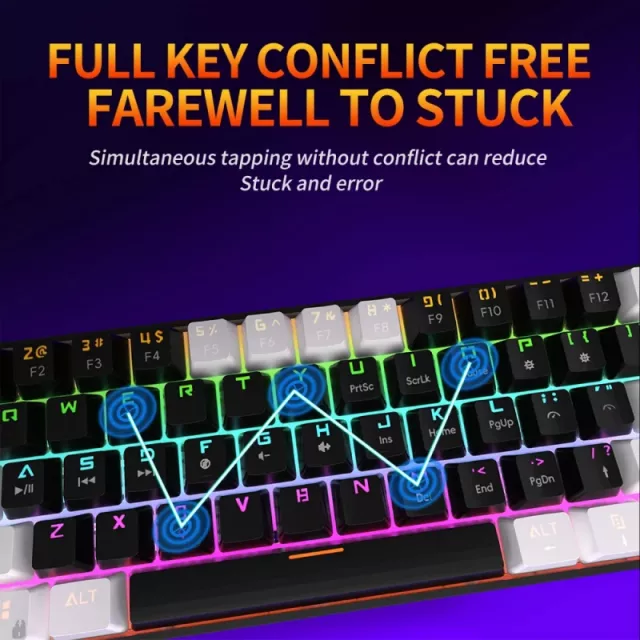 If you’re looking for a keyboard that combines power, style, and practicality, this 61-key RGB mechanical keyboard is the ultimate choice. Compact, customizable, and built to perform, it’s ready to keep up with every challenge. Don’t just play—dominate with precision and style.