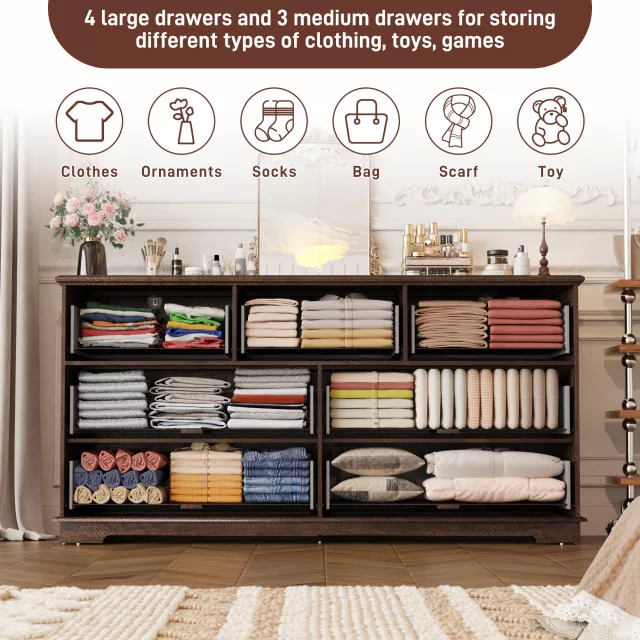 • Spacious Storage: Features 7 deep drawers for clothes, bedding, or household items.