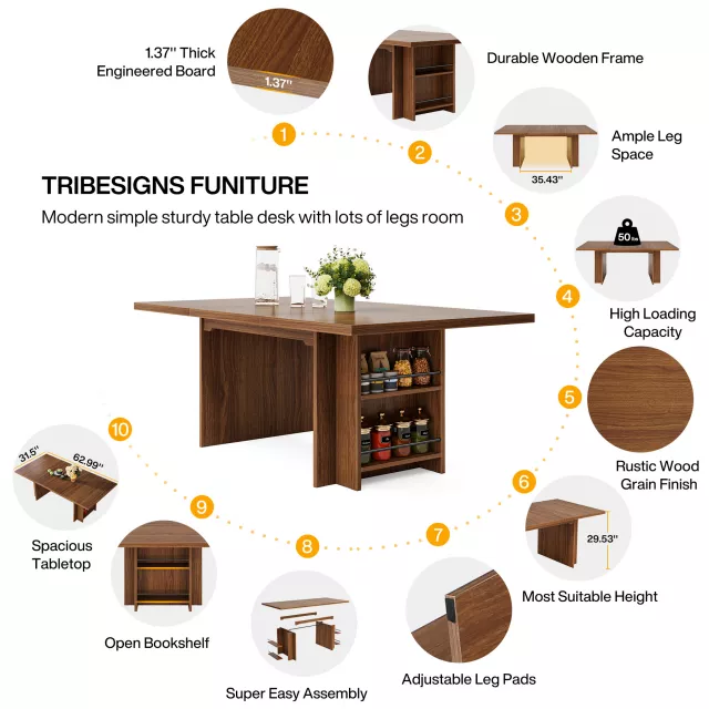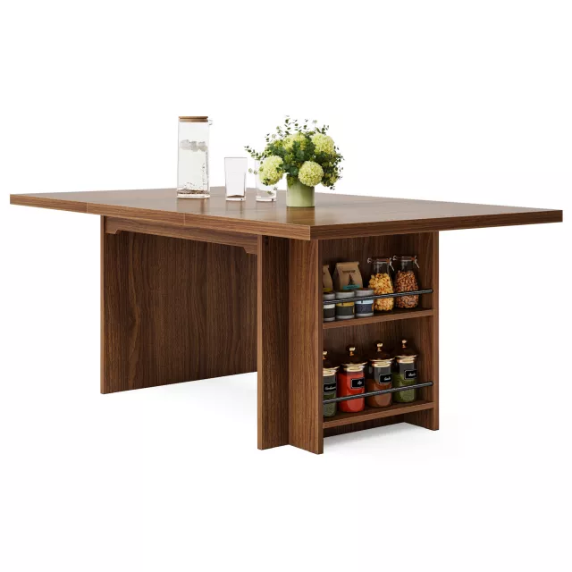 More than just a place to eat, this dining table is a multifunctional centerpiece for your home. With built-in storage shelves underneath, it’s as practical as it is beautiful—perfect for stashing away placemats, cookbooks, or dining essentials within easy reach. Whether used as a kitchen table, workspace, executive desk, or even a conference table, it adapts effortlessly to meet your needs.