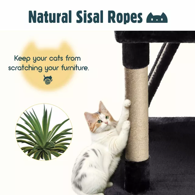 - Safe & Secure: Made with eco-friendly particleboard and safe, odor-free materials, this cat tree offers a secure environment for your pets to enjoy. The natural sisal posts are a healthy option for scratching, ensuring your cat stays happy and healthy.