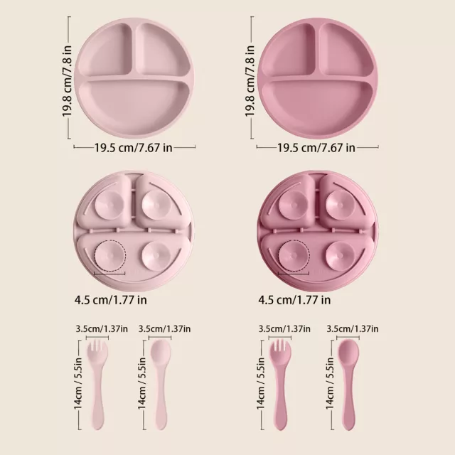 Made from high-quality, BPA-free silicone, each piece is soft to the touch yet durable enough to withstand everyday use. The suction base on the plates ensures they stay securely in place on any smooth surface, preventing spills and messes. The spoon and fork are ergonomically designed with gentle tips to protect delicate gums, encouraging safe self-feeding. This dinnerware set is lightweight and portable—ideal for use at home, daycare, or on the go.