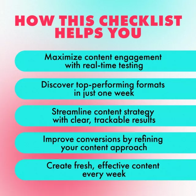 Don’t wait—download the 7-Day Format Testing Loops Checklist now and start testing your way to better engagement, more conversions, and a stronger social media presence. Unlock the power of data-driven content today!