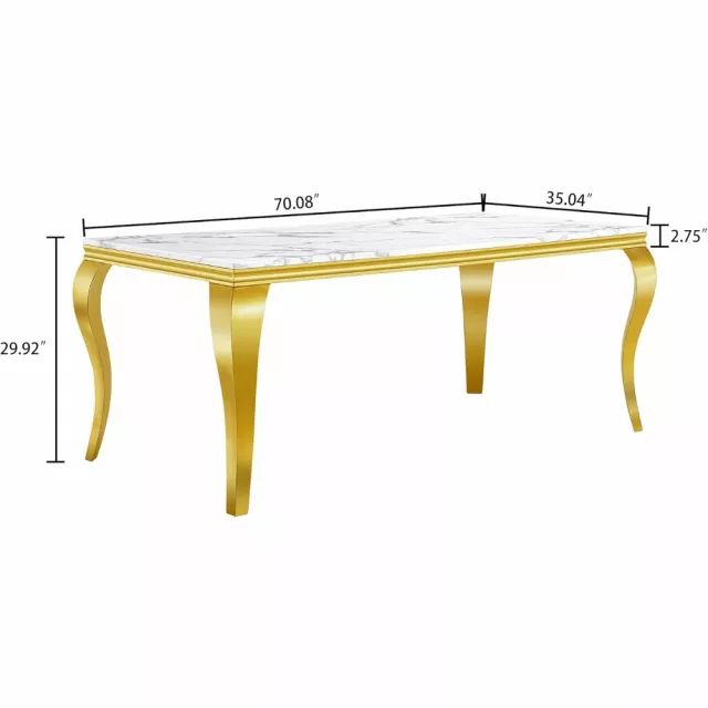 70″ Modern Faux Marble Dining Table for 6-8 People with S-Shaped Gold Base