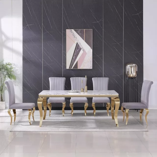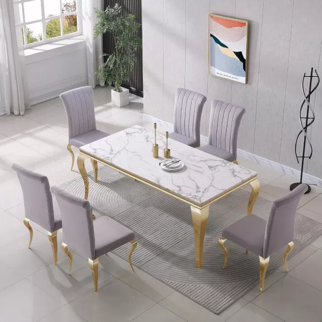 • Durable Stainless Steel Base: The double S-shaped gold stainless steel legs provide a sturdy and modern foundation, ensuring lasting durability and a touch of elegance to any dining room.