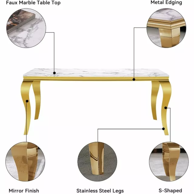 • Luxurious Faux Marble Top: The engineered MDF table top features a stunning faux marble design, offering a sleek, sophisticated surface that is easy to clean and maintain.