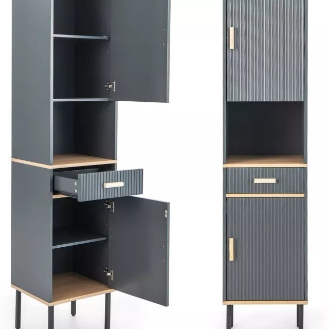 • Sturdy Metal Handles: The sleek metal handles enhance the cabinet’s contemporary design and are durable for frequent use.
