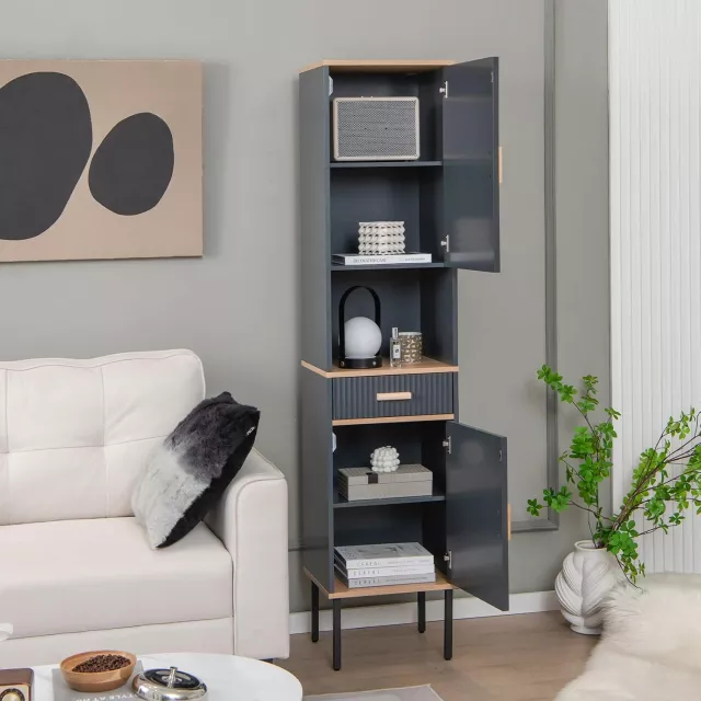 • Adjustable Shelves: Customize your storage with the 3-position adjustable shelves, perfect for organizing kitchenware, books, and other household essentials of various sizes.