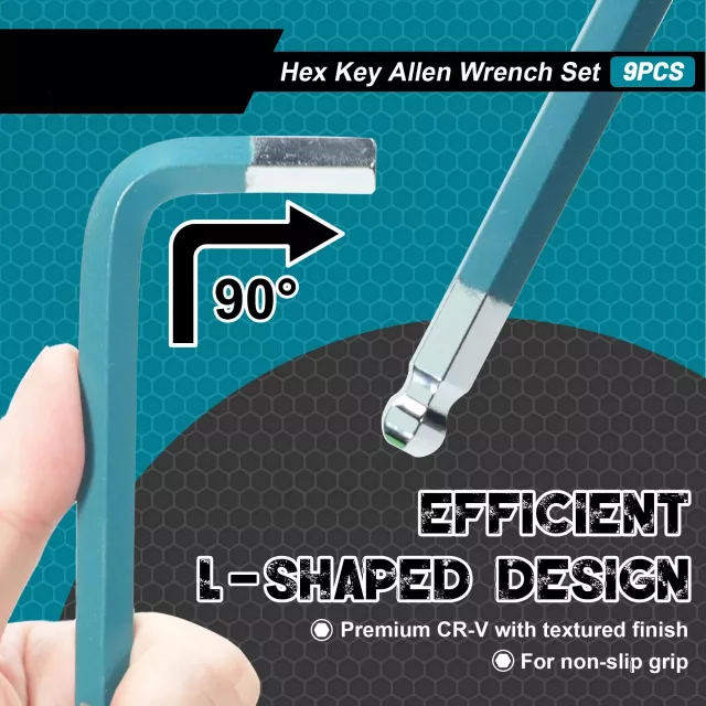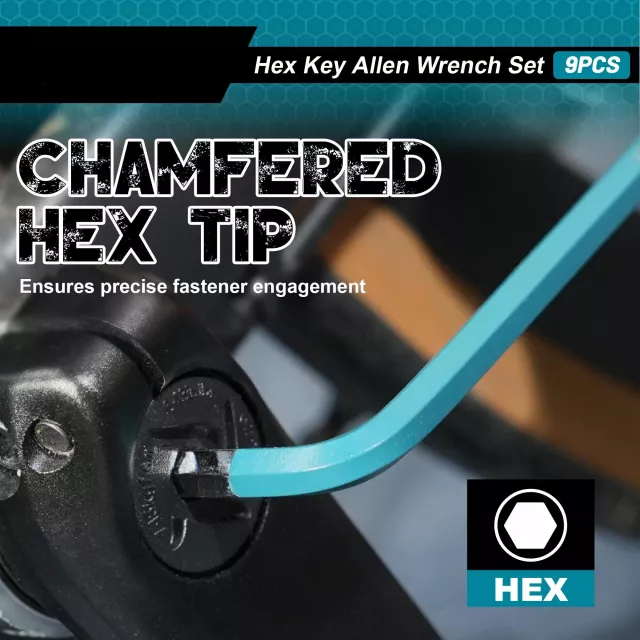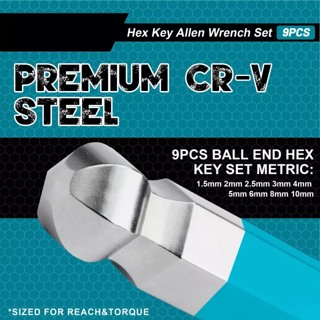Crafted from high-quality CR-V steel, these hex keys deliver exceptional strength, wear resistance, and long-lasting performance. The polished finish makes cleaning off grease or grime simple, while the textured satin-plated surface ensures a secure, non-slip grip. Each key is neatly organized in a foldable hanging holder, keeping your tools tidy and ready to grab whenever you need them.