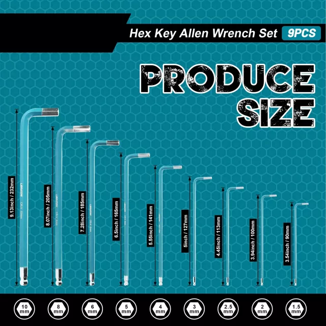 The ball-end design lets you work at a 25° angle, making it easier to reach bolts in tight spaces without stripping threads. The long-arm L-shaped style gives you extra leverage for greater torque and less effort, saving time and energy during repair work. Clear size markings make tool selection fast and hassle-free, so you can stay focused on getting the job done right.