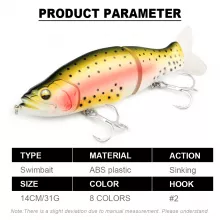 Elevate your fishing game with this expertly crafted Jointed Hard Bait Swimbait. Designed for serious anglers, this sinking wobbler delivers unmatched performance in every throw. Whether you’re targeting bass or pike, the lifelike motion and strategic design of this lure make it irresistible to predatory fish. The 14cm bait is engineered to mimic the subtle movements of a wounded fish, making it a prime target for big catches. Perfect for both freshwater and saltwater environments, this lure is your go-to for reliable and effective fishing.