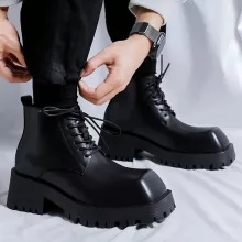 Step into a blend of rugged charm and refined elegance with these men’s vintage leather square-toe lace-up ankle boots. Crafted for men who appreciate style that lasts, these boots bring together the durability of traditional work footwear with the sleek look suitable for business, casual outings, and everyday wear. Whether you’re dressing up for the office or adding character to your weekend fit, these boots deliver comfort, confidence, and a classic British-inspired aesthetic.