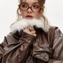 Stay Warm and Stylish with the Plush Collar Spliced PU Warm Coat