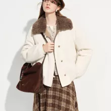 What truly sets this piece apart is its color-block design combined with a removable faux fur collar. You get two different styles in one jacket. Wear it with the collar for a warm, vintage winter vibe or remove it for a sleek, everyday look. The thickened polyester fabric provides reliable insulation without feeling heavy or restrictive.