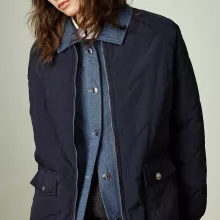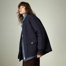Cold weather doesn’t have to mean bulky layers or boring outfits. This women’s quilted fleece denim cotton winter coat blends cozy warmth with a clean, modern office look. Designed with a relaxed shirt-style fit, it gives you room to layer while still looking put-together. The soft cotton exterior mixed with denim panels creates a unique texture that stands out without being loud.
