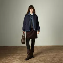 What makes it special is the balanced mix of casual and work-ready style. The denim paneling adds character, while the solid tone keeps it elegant and easy to pair with dresses, slacks, or denim.