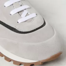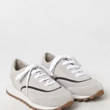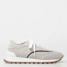 What sets these sneakers apart is their combination of luxurious materials and thoughtful design details. The branded insole not only adds comfort but also reinforces the high-quality craftsmanship you can expect from the Brunello Cucinelli brand. The slight pointed toe gives a modern twist to the classic sneaker, while the suede detailing adds a tactile dimension that catches the eye. The contrasting heel pull is a distinctive touch, making these sneakers an instant standout piece in any casual outfit.