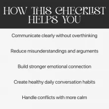 This checklist is perfect for married couples, engaged partners, or anyone in a committed relationship who wants practical tools for how to keep communication healthy in marriage. It’s ideal for busy couples, long-distance partners, and those looking to reconnect emotionally.