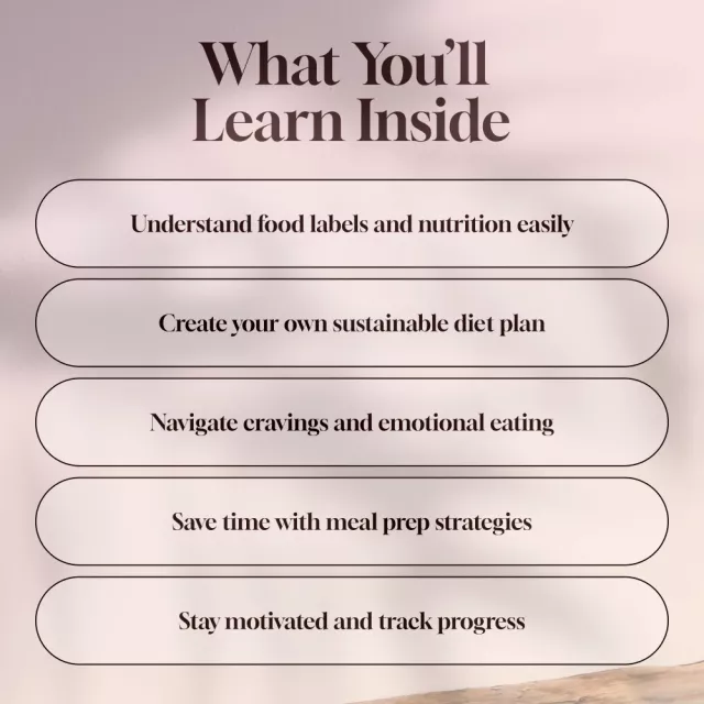 Created for absolute beginners, this resource breaks down nutrition into simple, clear lessons and offers step-by-step help to build sustainable eating habits that support a healthier lifestyle. If you’ve struggled to stay on track or don’t know where to begin, this guide will empower you with the tools and motivation you need to succeed.