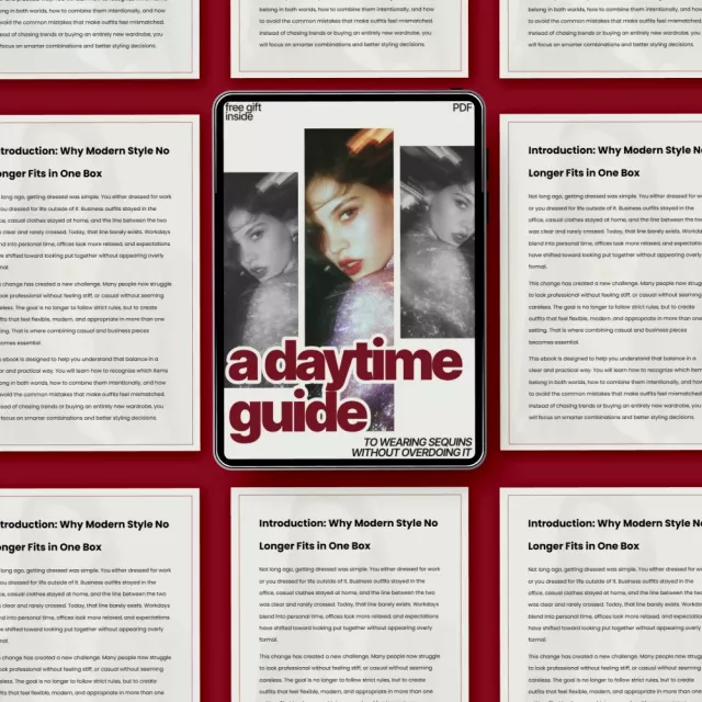 Stop saving your sequins for “someday.” Learn how to wear sequins during the day with intention, ease, and personality. Download your digital guide today and turn sparkle into an everyday style advantage.