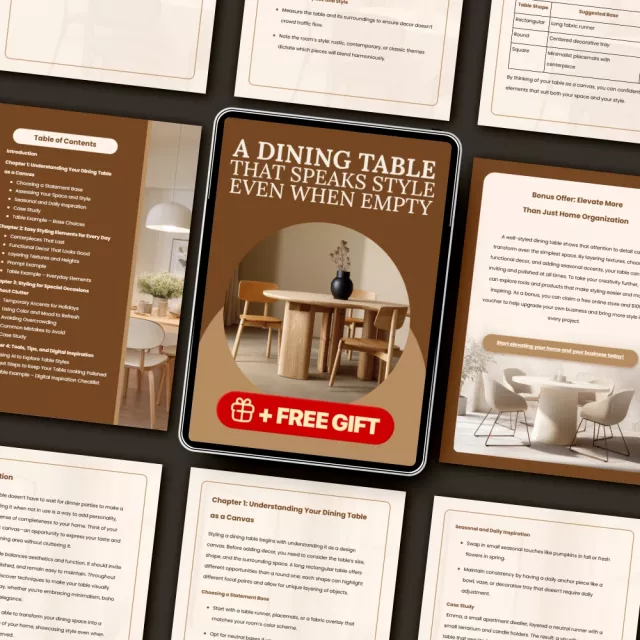 Don’t let your dining table sit bare or uninspired. With A Dining Table That Speaks Style Even When Empty, you’ll learn how to style a dining table when not in use and create a warm, welcoming atmosphere every day. Download your copy today and start transforming your dining space into the heart of your home—beautiful, intentional, and effortlessly stylish.