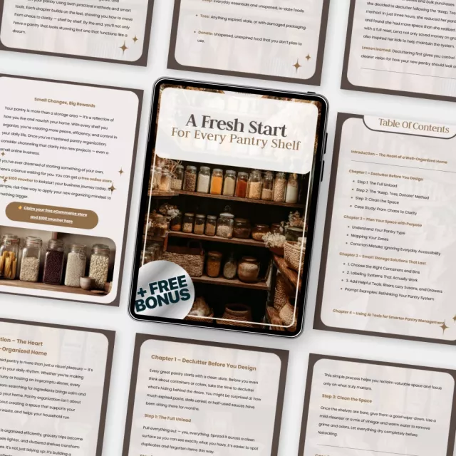 Make your kitchen the heart of calm and clarity. Download A Fresh Start for Every Pantry Shelf today and start building the organized, beautiful pantry you’ve always wanted—one shelf at a time.