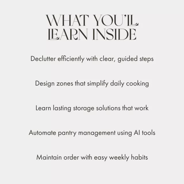 This guide is ideal for homemakers, renters, small-space dwellers, or anyone who wants to create a clutter-free, efficient, and stylish kitchen. Whether you’re starting from scratch or refreshing your system, this resource will help you save time, reduce waste, and enjoy your space more.