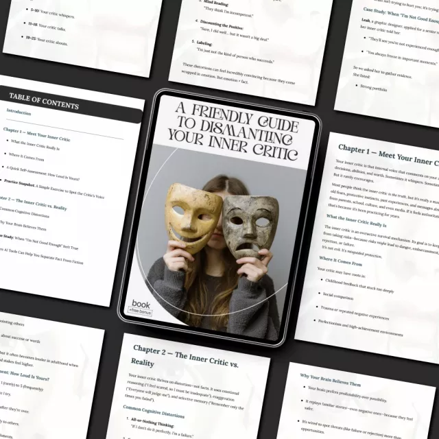 Download “A Friendly Guide to Dismantling Your Inner Critic” today and start transforming your inner dialogue. Learn how to stop my inner critic and replace it with clarity, confidence, and genuine self-compassion that lasts.