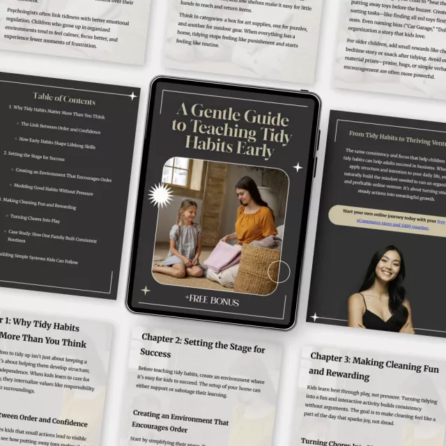 Discover the best way to teach tidy habits early with A Gentle Guide to Teaching Tidy Habits Early — a beautifully written, practical eBook designed to help parents and educators nurture lifelong organization skills in children. This isn’t about rigid routines or perfection; it’s about creating a calm, confident foundation for kids to naturally enjoy order and responsibility. Whether you’re a busy parent, homeschooler, or early childhood teacher, this guide gives you the tools to make tidiness feel fun, achievable, and meaningful.