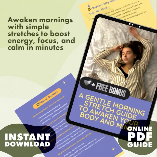 Your mornings set the tone for everything that follows. Download A Gentle Morning Stretch Guide to Awaken Your Body and Mind today and create a Morning Stretch Routine to Start Calm—because when you start your day with presence, the rest flows with ease.