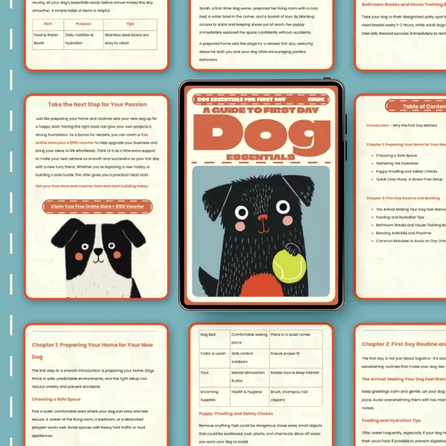 Bringing home a new dog is exciting—but it can also feel overwhelming. A Guide to First Day Dog Essentials is your all-in-one digital companion designed to make that special first day smooth, joyful, and stress-free. Whether you’re adopting a playful puppy or an older rescue, this guide walks you through every step of preparation, bonding, and care so your furry friend feels safe and loved from the moment they arrive.