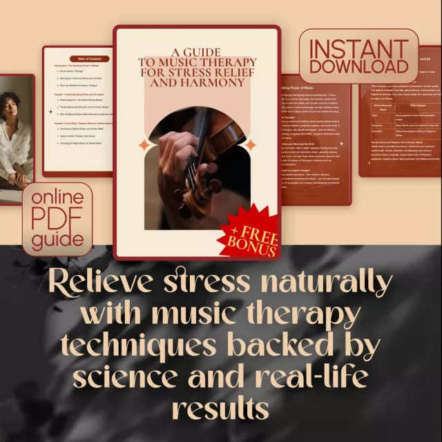 Discover the transformative power of sound with A Guide to Music Therapy for Stress Relief and Harmony, a digital download designed to help you find peace, balance, and mental clarity through the proven techniques of music therapy. Whether you’re overwhelmed by work, navigating anxiety, or simply looking for a gentle, enjoyable way to unwind, this guide offers an easy-to-follow path to reducing stress and creating harmony in your daily life. Backed by science and enriched with real-life stories, it’s more than just information—it’s a personalized tool for healing.